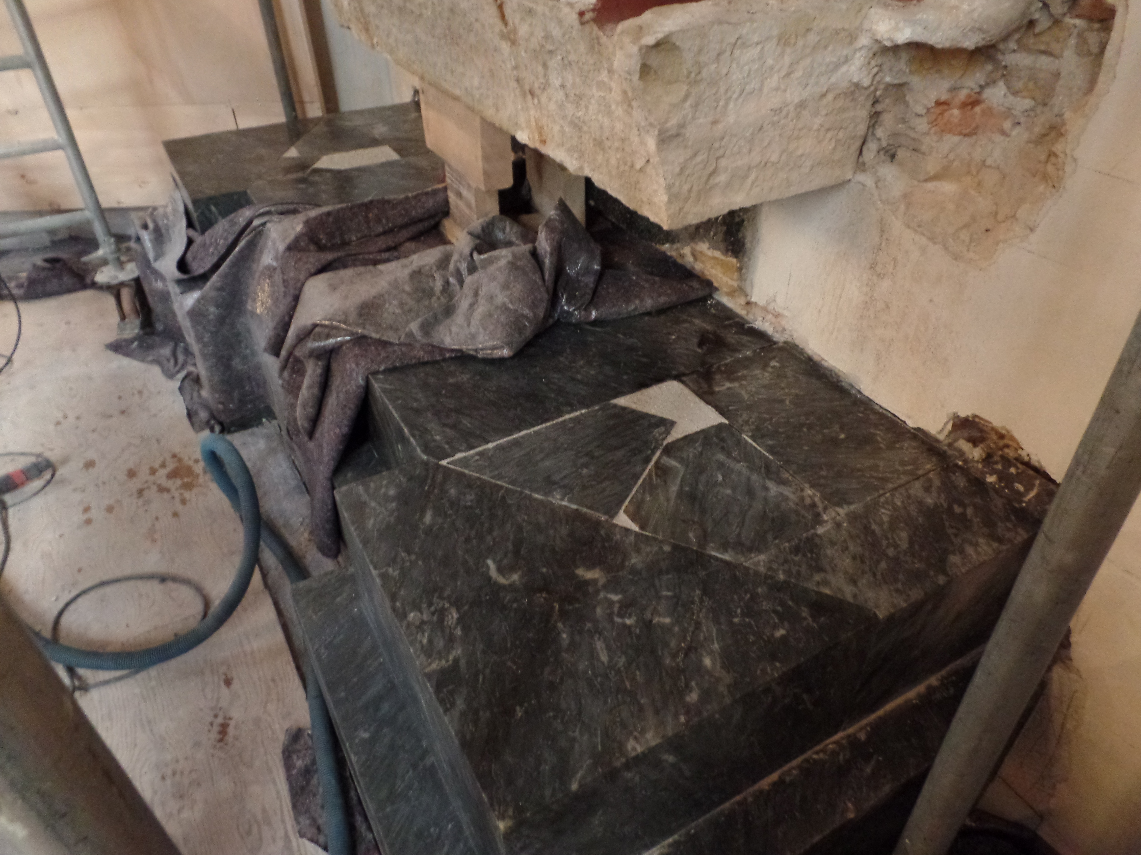 Eerste marmer plaat obelisk wordt teruggeplaatst