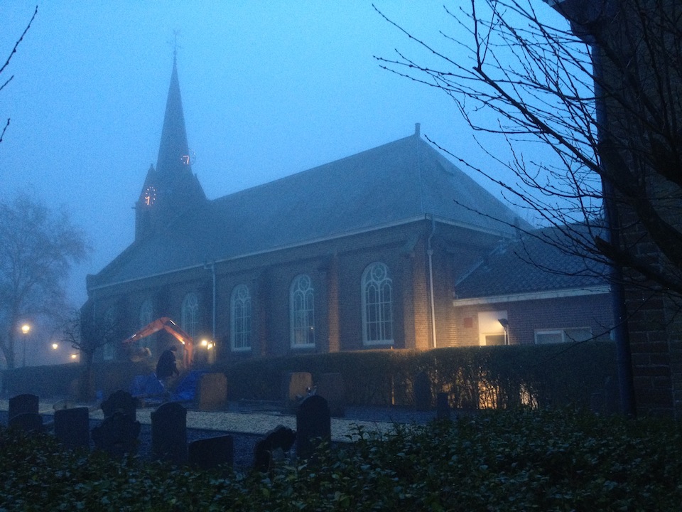Bij het krieken van de dag is de uitvoering van het funderingsherstel aan de NH kerk in Ammerstol al in volle gang. Vanaf 12 januari wordt er herstel gepleegd aan de funderingen van de toren en kerkzaal. Zoals in veel gevallen is de toren in eigendom van de burgerlijke gemeente en de kerkzaal van de kerkelijke gemeente. In gecombineerd opdrachtgeverschap wordt het plan in uitvoering gebracht. Walraad architecten heeft de onderzoeken begeleid, het plan technisch en budgetair uitgewerkt, de vergunningsaanvraag verzorgd en voert directie.