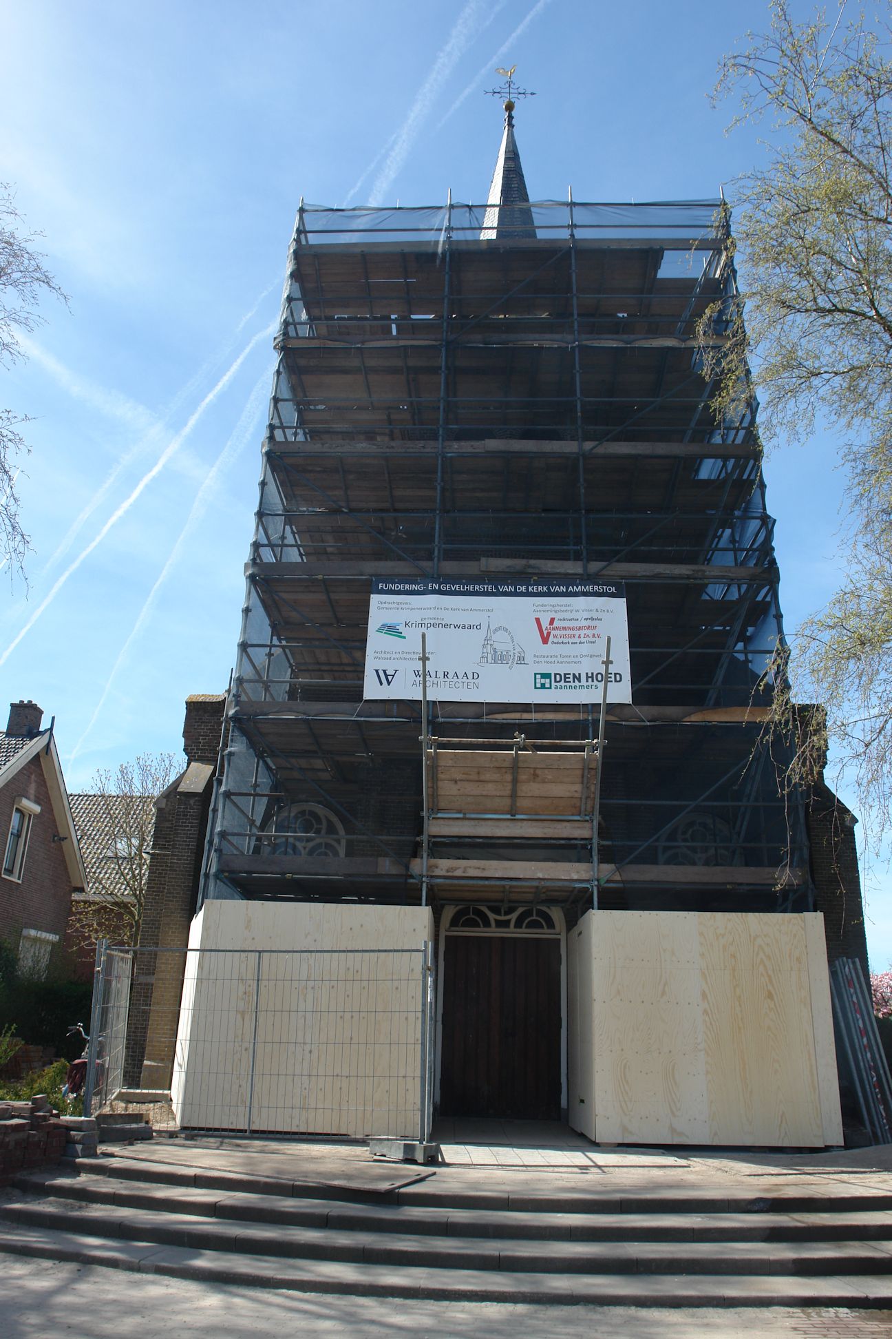 Na afronding van het funderingsherstel aan de toren en de kerkzaal, is half april gestart met de uitvoering van het onderhoud aan de Toren van de NH kerk te Ammerstol. De werkzaamheden bevatten o.a. inboeten van metselwerk, voegwerk en lei- en loodwerk. Walraad architecten is directievoerder in opdracht van de gemeente Krimpenerwaard.